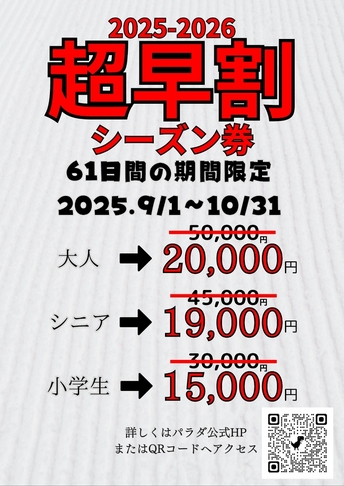 ここだけの“内緒のご案内”です…! 2025-26シーズン「超早割シーズン券...