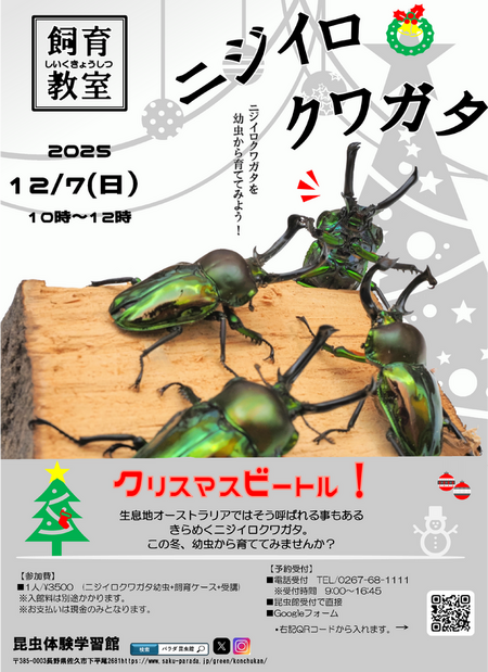 〇参加費 3500円/1人 幼虫と飼育ケース付き!