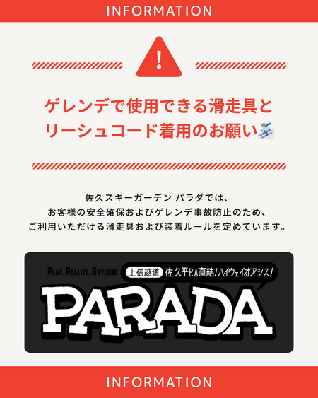 佐久スキーガーデン パラダでは、お客様の安全確保およびゲレンデ事故防止のため、